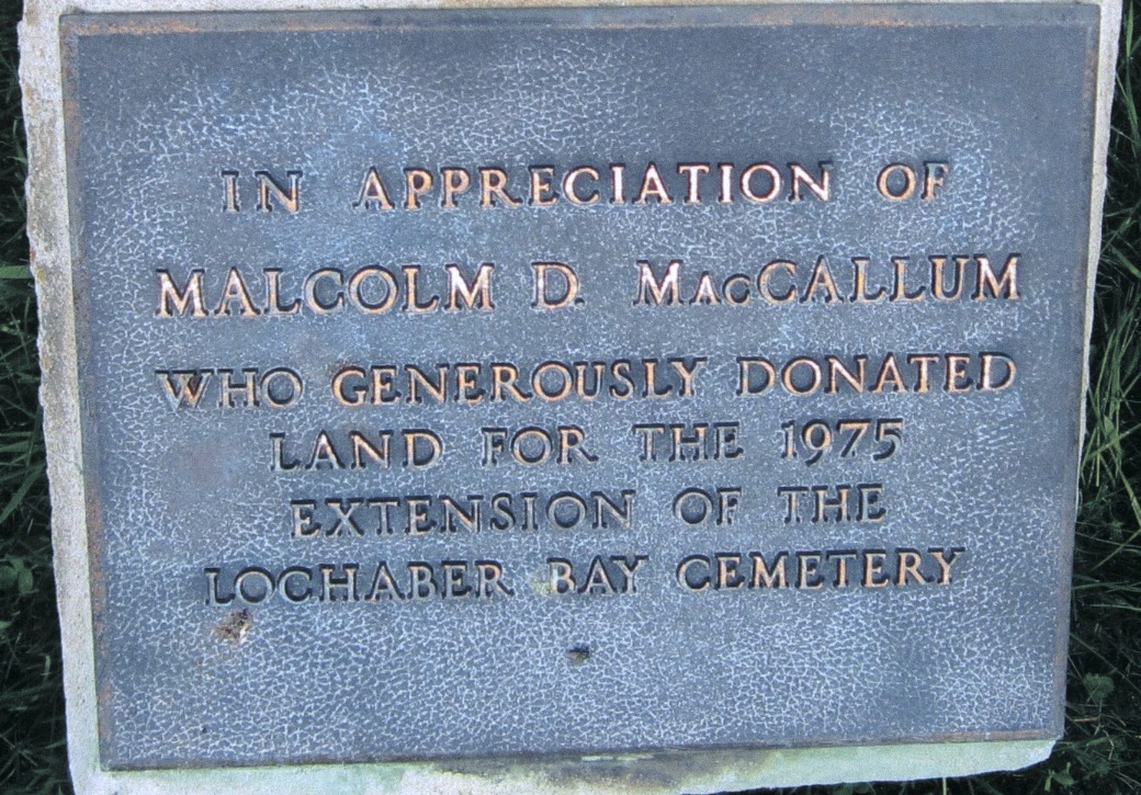 You will see a small plaque close to the west gate of the cemetery in Malcolm D MacCallum's memory for donating land to the cemetery.