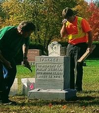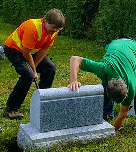 We are pleased to report that we completed our Headstone Maintenance Project this September and we are quite satisfied with what we where able to accomplish. Granted, we had to adjust our expectations a bit to keep the costs reasonable, but we now feel we've repaired and stabilized a number of headstones that were of immediate concern.