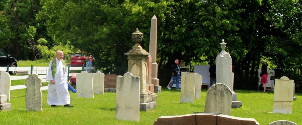 Rev. Daly touring the cemetery.