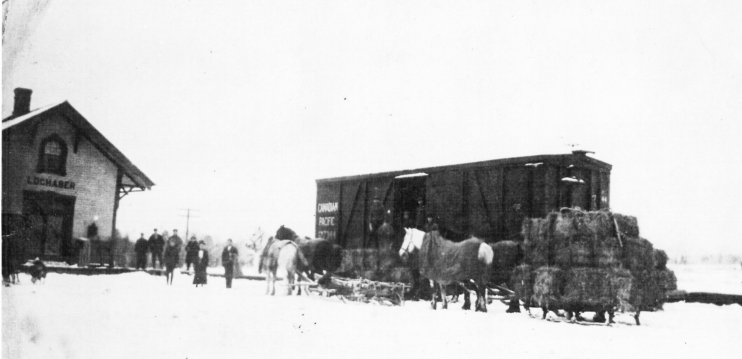 Locahber Station - loading pressed hay, about 1910.